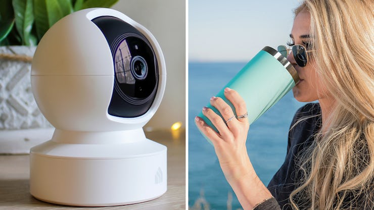 Your peace of mind is worth much more than what this smart security camera costs. It has a head that swivels 360 degrees to detect and capture motion from up to 30 feet away — even at night. HD-quality recordings are available in the app. Recordings are stored on a MicroSD card (up to 64 GB) with no subscription, and you can also control the device using Alexa or Google Assistant. A 2K version is also available within the listing.