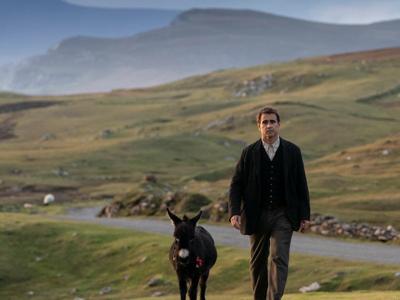 Farrell’s Pádraic is a sweet, guileless man who feels like he’s been plucked straight out of a fable. He lives happily on this isolated island in a cottage with his whip-smart sister (Kerry Condon) and far too many farm animals. He’s just as happy nattering away to his donkey, Jenny, as he is to his intellectual friend Colm. He’s just nice, everyone says.