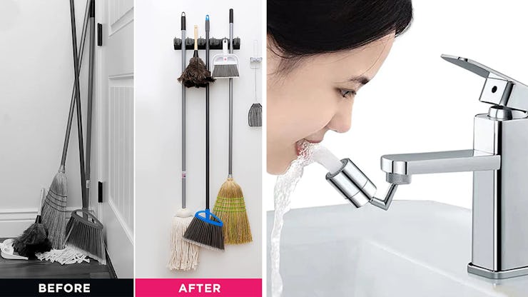 Simply screw this swiveling faucet attachment onto the faucet you have and you can point the water stream in any direction you want — including up so you can sip from it or wash your face in it. It makes cleaning the sink, filling containers, or brushing teeth so much easier.