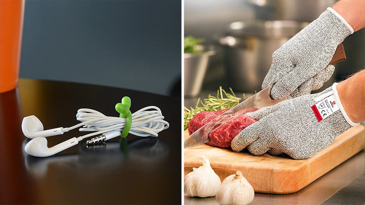 When you are working with a knife or sharp blade, protect your hands from accidental slicing by donning these no-cut gloves — made of polyethylene, spandex, and fiberglass — first. They are stretchy — so you don’t lose dexterity — and they stop the knife before it hits skin, so you don’t end up in the ER.