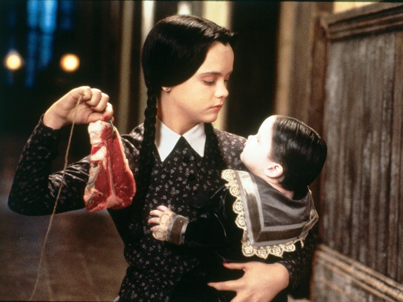 Most of those actors return from Sonnenfeld’s 1991 film The Addams Family, including Raul Julia and Anjelica Huston as Wednesday’s parents Gomez and Morticia, Jimmy Workman as her brother Pugsley, and Christopher Lloyd as her Uncle Fester. Carol Kane takes over as Wednesday’s grandmother, and there’s another addition to the family at the beginning of the movie, when Morticia announces her pregnancy right as she goes into labor. The arrival of young Pubert, complete with a full head of jet-black hair and a mustache that resembles his father’s, sends Wednesday and Pugsley into a bit of a crisis, as they try to eliminate the perceived threat from their new sibling.