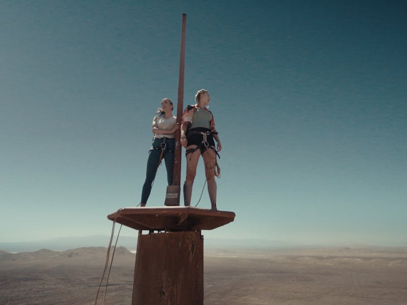 To cheer her friend up, Hunter invites Becky to climb a decommissioned 2,000-foot radio tower in the desert to scatter Dan’s ashes and move past the tragedy. Hunter also has ulterior and slightly selfish motives, as she wants to document the climb on a drone to amass more YouTube followers.