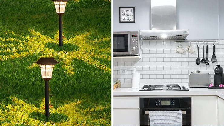 Not only are these solar-powered yard lights more eco-friendly, but they also save you from buying batteries or worrying about changing them. Stick them in your yard, and they’ll only take 10 hours in direct sunlight to charge and run for eight hours, a true no-tough experience. Plus, the plastic design looks like metal, but you don’t have to worry about rust if you get a lot of rain.