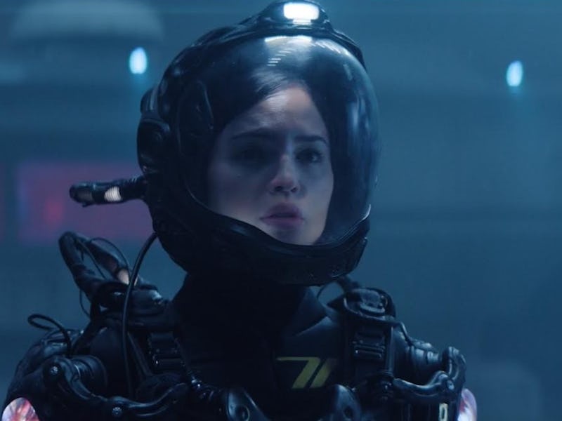When Riya (a steely Eiza Gonzalez) wakes up, bloodied and disoriented, in an empty space station, she doesn’t even remember her own name. As she stumbles through the destroyed station, alarms blaring, all she finds are the terribly mutilated corpses of her crewmates, slaughtered in an apparently violent struggle. When Riya ventures outside the station, she’s engulfed in dust that makes it almost impossible to see, if it weren’t for the awe-inspiring cosmic lights that illuminate a shadowy figure standing in the distance. She waves, and it waves back, as if mimicking her actions. Is it an illusion? A creature native to this planet? She doesn’t have much time to ponder this, as she stumbles back to the station and tries to stop the stabbing pain in her head that is accompanied by terrifying visions of her crewmates’ faces, screaming before melting into terrifyingly inhuman shapes.