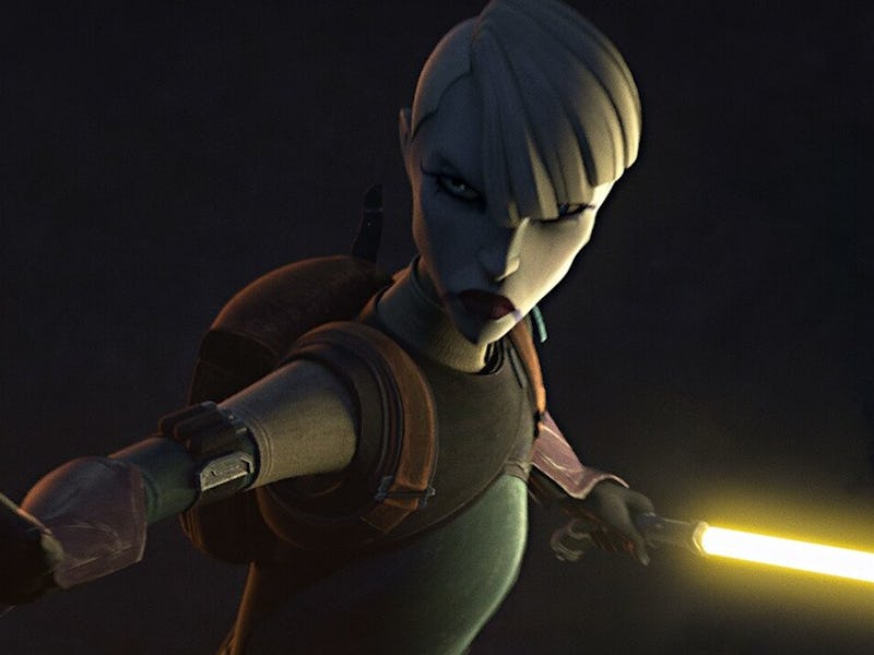 However, in the trailer for the upcoming final season of The Bad Batch, Ventress and her yellow lightsaber appear to be alive and well. But don’t worry about any canon confusion: Bad Batch supervising director Brad Rau told StarWars.com, “Any new storytelling with Ventress will align with the events of Star Wars: Dark Disciple.”