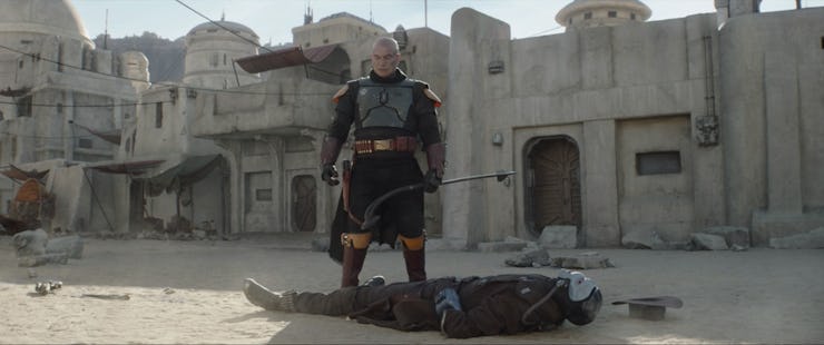 Boba Fett is a popular guy. When the new daimyo of Tatooine has to gather an army to fight off the Pyke Syndicate, he doesn’t need to look far. First, there are the mod kids (the Space Biker Teens) who serve at his pleasure, along with Black Krrsantan and Fennec Shand. Mando is eager to help when Boba asks. Even Cobb Vanth and the citizens of Freetown, previously known as Mos Pelgo, sign onto the cause after an unfortunate visit from Cad Bane.