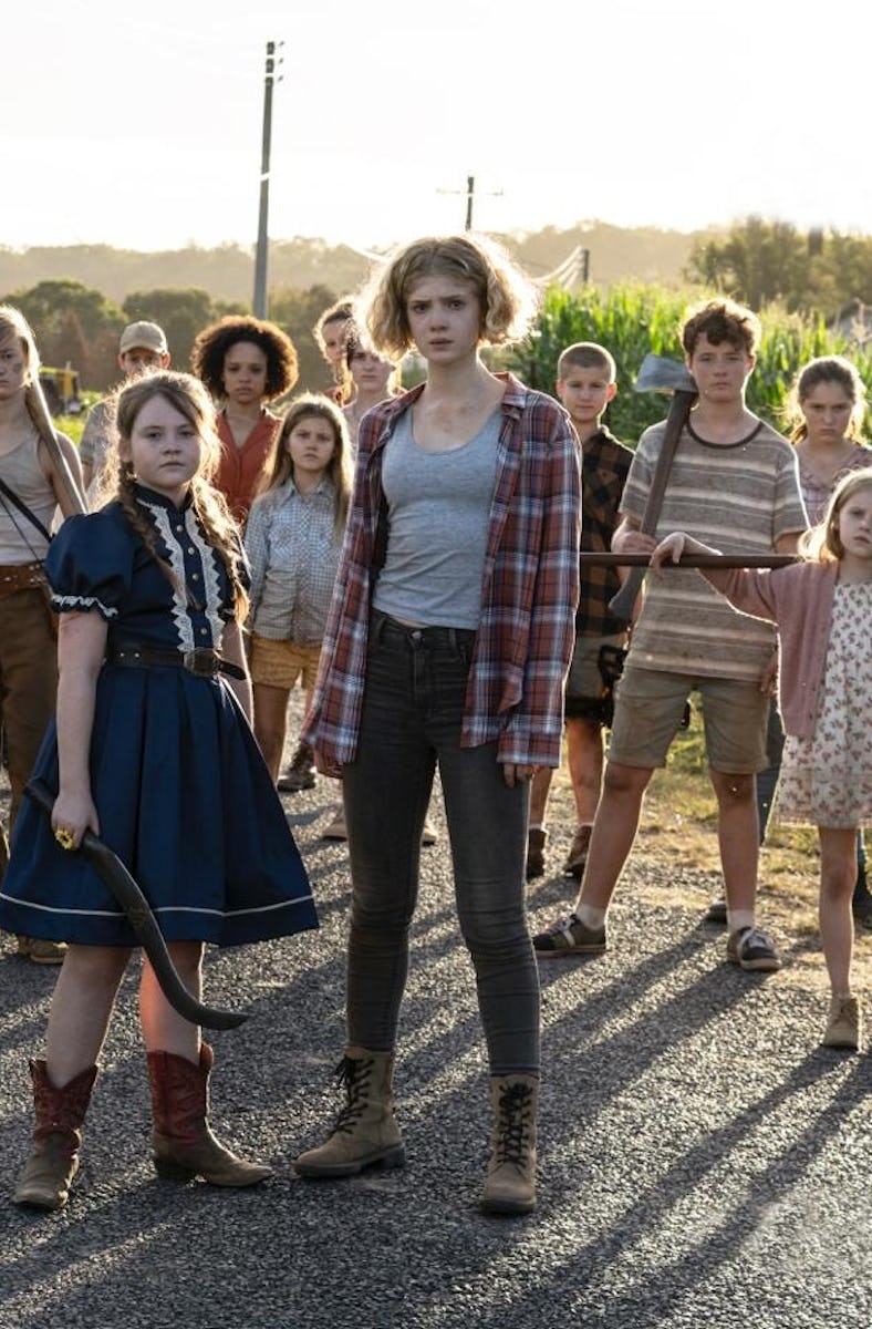 A short time later we meet our protagonist Boleyn (Elena Kampouris), on the verge of going off to college. In the fields, she encounters Eden, now fully embodying the Red Queen and leading a zealous gaggle of children in a mock trial for one of their own. Order among the adults is in similar shambles, with the surrounding corn dying and rotting. Boleyn’s father Robert (Callan Mulvey) blames Big Agro and wants to burn the corn, while Pastor Penny (Bruce Spence) blames the town’s “spiritual crisis.” Boleyn comes across Eden and her cult of friends painting the corn red with blood (warning sign, anyone?), and enlists them to bring the adults to the town’s Community Hall at night for a televised show trial, with a journalist in tow to witness the event. Enlisting a diminutive, blood-covered cult leader to gather up the adults, however, turns out to be a shockingly bad idea.