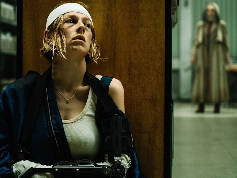 Hunter Schafer stars as the 17-year-old American transplant Gretchen, whose family has just relocated to a resort in the Bavarian Alps. Her father Luis (Marton Csokas), stepmother Beth (Jessica Henwick), and mute 7-year-old stepsister Alma (Mila Lieu) are infinitely more excited about their uproot, especially Luis and Beth, both hired to renovate on location. The resort’s figurehead, Mr. König (Dan Stevens), greets everyone with a thick “Guten Tag” — a caricature of national stereotypes flying considerable red flags. Gretchen’s teenage angst begets prickly agitation, but quickly pivots to heightened suspicion when women on the premises display abnormal behaviors in the entrance lobby. Something isn’t quite right, and that’s when Gretchen sees it — a red-eyed creature sprinting behind as she speedily peddles her bike toward home one night.