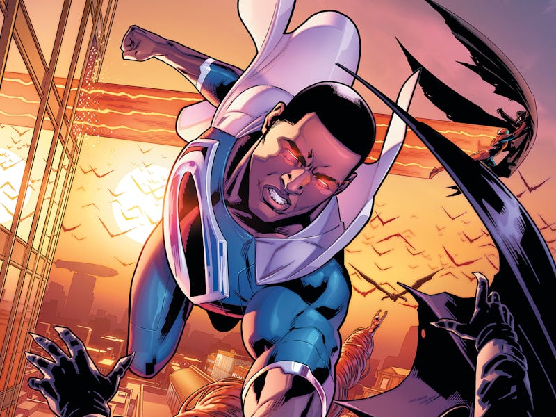 Calvin Ellis, the Superman of Earth-23, in Action Comics #9. The character was created in 2009 by Grant Morrison and Doug Mahnke, who took inspiration from then-sitting U.S. President Barack Obama.