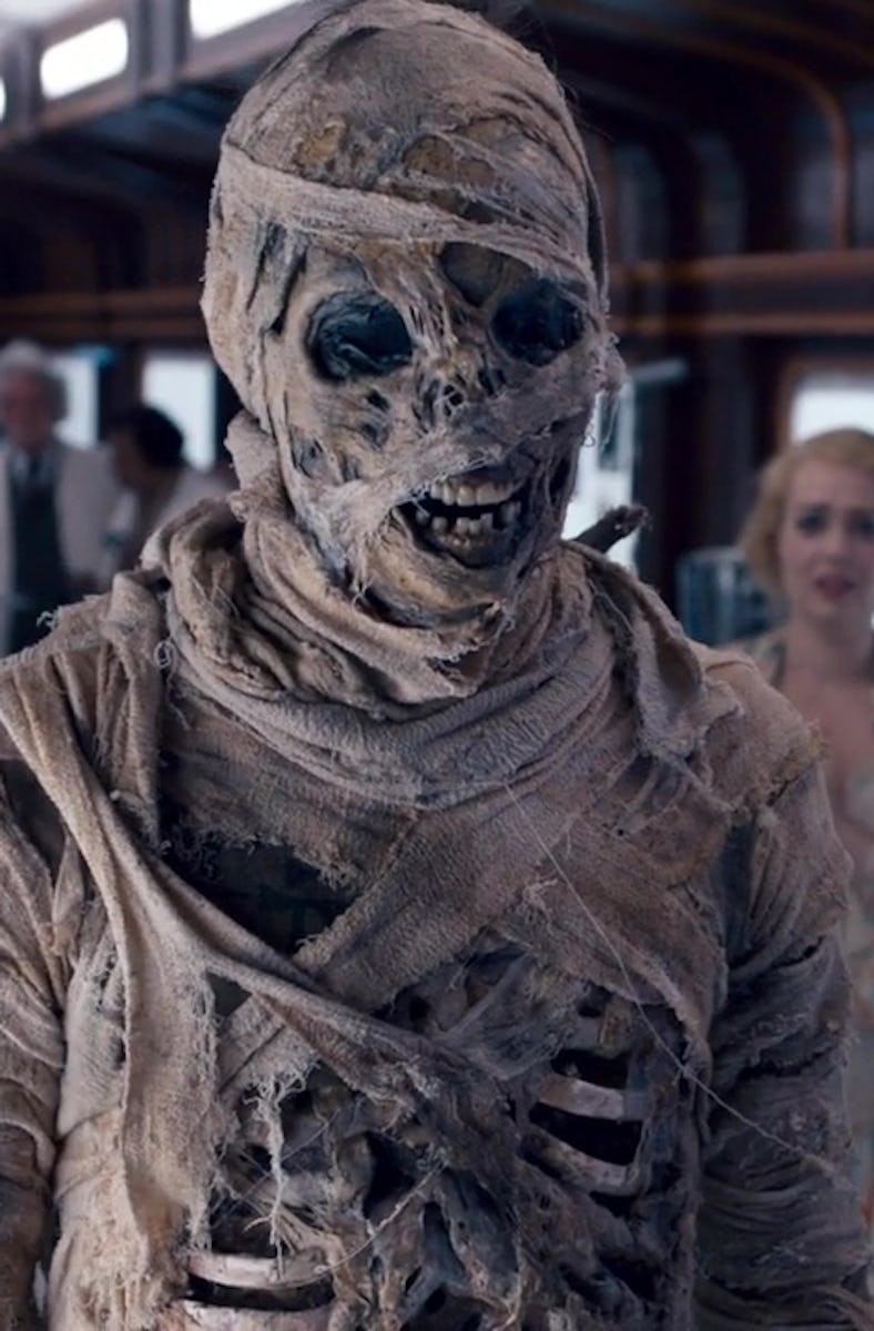 They decide to take a trip for one “last hurrah” to the Orient Express... in space! (Side note, this conceit was previously used in “Voyage of the Damned,” which was set on a Titanic In Space, but the trope worked then and it certainly works now.) Everyone is dressed in their Gatsby-esque finest, but the entire train is haunted by a terrifying mummy only visible to its victims, and once it’s seen, there are only 66 seconds left until it strikes. Every murder is shown in real-time, with an on-screen timer counting down the seconds.