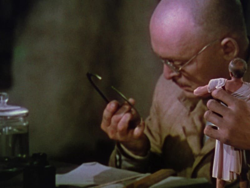 Unsurprisingly, the dastardly Thorkel doesn’t want any company. And as the biologists begin to question both his sanity and his scientific intentions, not to mention take credit for his work (upon “discovering” a pygmy-sized pig, egotistical group leader Dr. Charles Bullfinch, played by It’s A Wonderful Life’s Charles Halton, decides to name it in his own honor), the evildoer charms them into his radiation chamber and zaps them into miniatures.