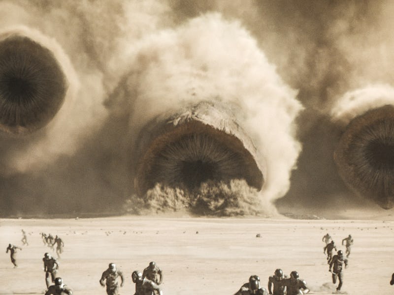 One of the most incredible things about Denis Villeneuve’s Dune movies is how immense everything looks. Each brutalist building feels like an eighth wonder of the world looming over the minuscule masses of people. The desert of Arrakis stretches on endlessly, making our hero Paul Atreides (Timothée Chalamet) seem like a speck of sand. And then there are the sandworms, whose gaping mouths seem gigantic enough to swallow a small city (or at least a very large spice harvester).