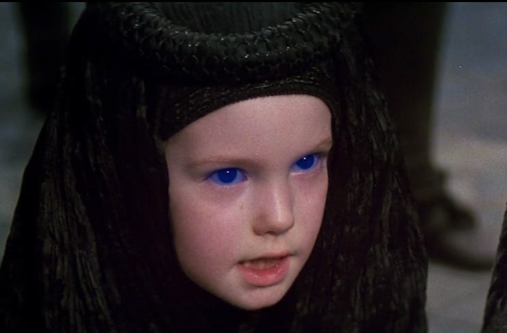 Throughout the first Dune, Alia is one of the book's biggest plot twists. Paul's mother, the Lady Jessica, is secretly pregnant with Alia when she and Paul are discovered by the Fremen in the deep desert of Arkais. After undergoing a ceremony in which Jessica drinks "the water of life," her unborn child is made into...well...a super baby! When Alia is born, she is fully aware all the memories of her ancestors, making her like a little tiny baby Time Lord. She can walk almost right away and has that creepy precocity that all magic, talking babies have in horror movies and other sci-fi.