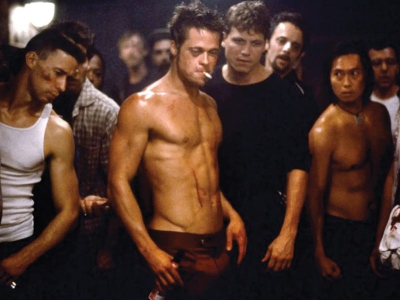 The movie, for anyone who hasn’t absorbed the basics through pop culture osmosis or had the film foisted on them by an excited boyfriend, stars Edward Norton as a nameless white-collar office drone suffering from insomnia and a bad case of malaise. He finds emotional catharsis in attending support groups for diseases he doesn’t have, but after a chance encounter with charismatic soap salesman Tyler Durden (Brad Pitt dressing like a garish boxing promoter), the pair find a new outlet in beating the crap out of each other.