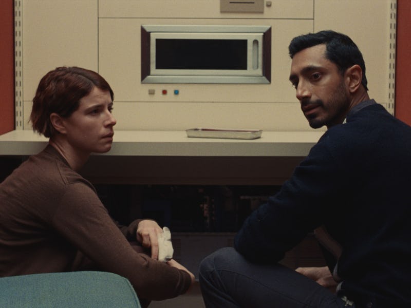 Signifiers like the Spice Girls and the sound of the testing machine, which Nikou said drew inspiration from the old 56k modem sound, also help set the overall milieu of the film without boxing it into a specific time period. But don’t mistake that loose interplay between past and future as any lack of rigor in the design. Nikou’s films pack significant, revealing details throughout the frame to help sell the veracity of his invented landscape. Streaming viewers quick to pause for Easter eggs may find the film a particularly rich text. “Nothing looks empty,” Nikou observes. (To validate his point, he adds that Riz Ahmed asked to take posters from the walls of the institute to keep at home.)
