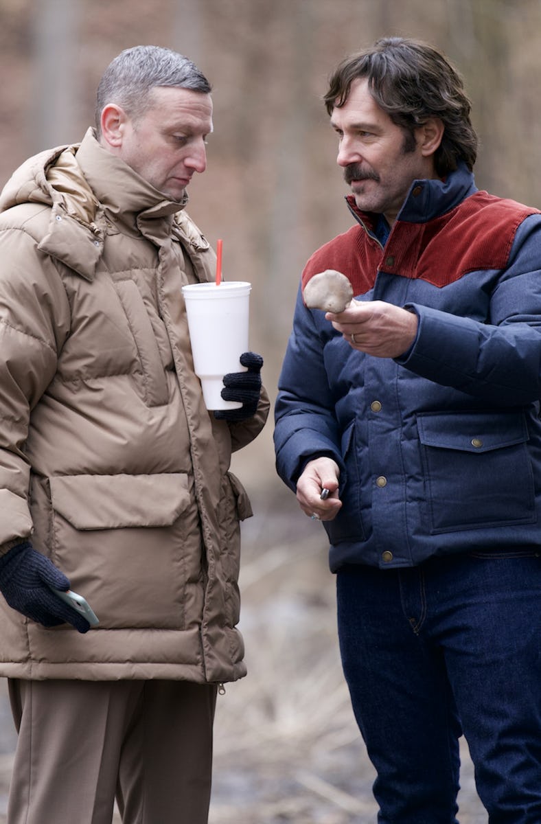 When the wig falls off, [that’s] the first scene that is coming to my mind. We got a lot of different options there, where Paul's really freaking out and Tim's really freaking out. And then we got smaller options, [which are] in the script. His wig falls off, he's terrified. He puts it on, is it straight? And then he gets pulled away. But there's so much room there when you're shooting for them to play out the reality of the scene. I think Tim, his reaction is him turning away and being so terrified. That's not necessarily in the script. That's Tim finding it in the day, and Paul being so quiet and terrified, that's them finding it together.