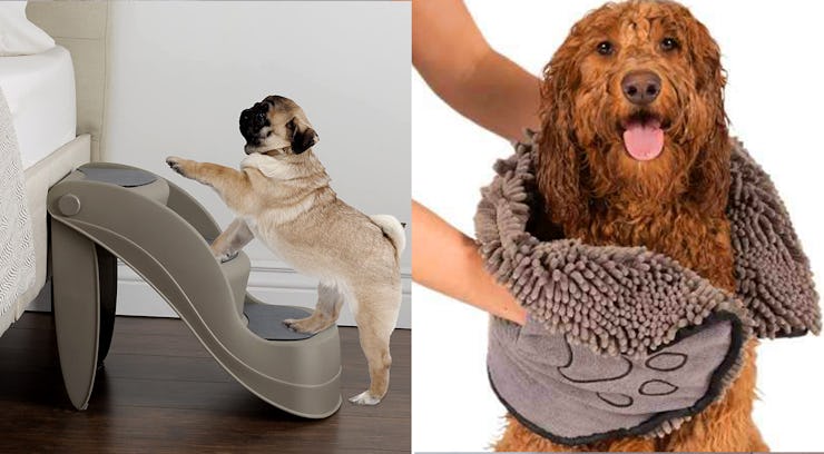 If your pet needs a little help climbing onto furniture or into the car, these foldable pet steps make it easy and comfortable. Each step is equipped with a non-slip pad to give their paws traction, and the steps fold flat for easy storage. When opened, the steps measure 17.5 by 14 by 14.5 inches.