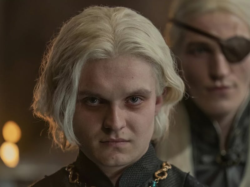 Cheese then asks Helaena which of her two sons, Maelor and Jaehaerys, she'd prefer they kill. After Helaena reluctantly chooses her youngest, Maelor, Blood decapitates Jaehaerys instead before fleeing the Red Keep with the boy's head. It’s a disturbing sequence, even by George R. R. Martin's standards. But Maelor has been excluded from House of the Dragon so far, so Helaena's choice is inevitably left out of the HBO adaptation. The series also spares Alicent from witnessing Jaehaerys' murder. Instead, Helaena flees to Alicent's chamber, where she’s revealed to have been romantically entangled with Ser Criston Cole (Fabien Frankel) while everything else was happening.