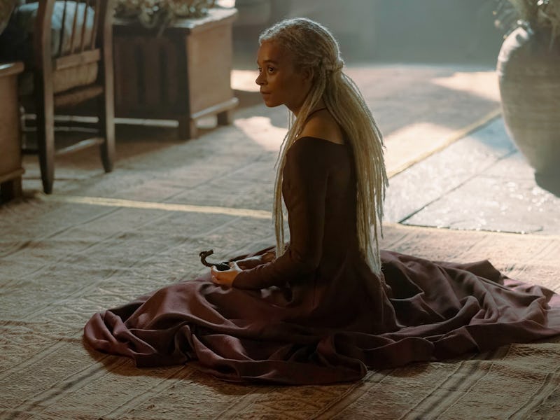 “We’ve really done a lot of legwork to set [Rhaena] up from the beginning as somebody in this Targaryen household who does not have a dragon,” the writer recently told Collider. Rhaena’s journey at the end of Season 2 shows us “how desperate [she] is for that sort of self-identification as a dragon rider, and is willing to go to fairly dangerous lengths to try to see that realized.”