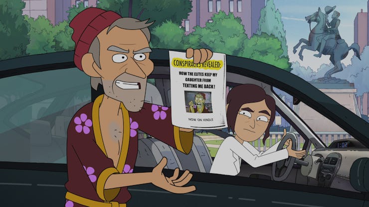 This is one of many examples of how Rand traumatized his daughter while pursuing his own interests. Rand, as we got to know him in each episode, fully stepped into his disgraced, washed-up, alcoholic retiree lane. But, he also had a chip on his shoulder. And Cognito, Inc., the shadow government entity he helped build, and its leader JR Scheimpough (Andrew Daly), was the target of all of his rage.