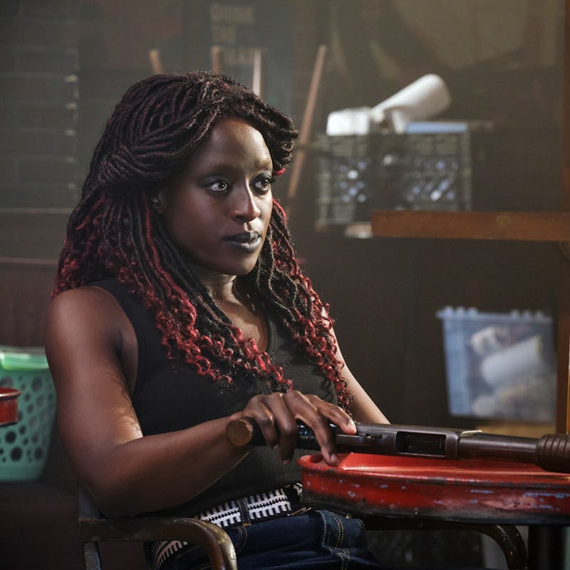 She wanted to make sure the bar represented a “kaleidoscopic vision” of the character, complete with representations of Jazz icons like Ella Fitzgerald and Sarah Vaughan, who Aghayere says in her “wheelhouse.” After collaborating with director Lea Thompson and production designer Dave Blass — before they built the set — Aghayere says she was able to imbue the 2024 Ten Foward with something that felt “actually mine.” When Aghayere first walked into the bar, she was at home.