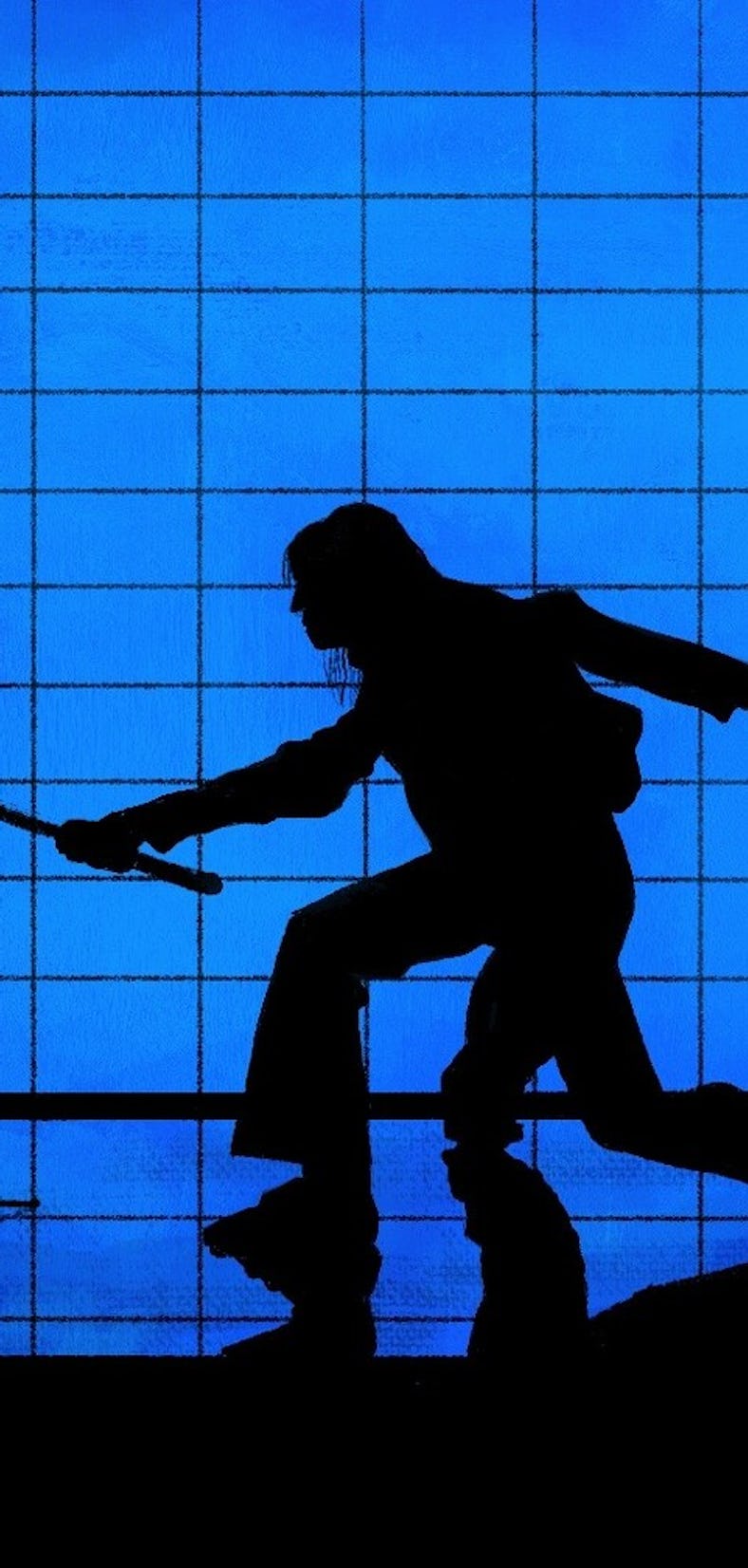 At one point, the Bride snatches an eyeball from the socket of a Yakuza thug. In an instant, the scene shifts to a black-and-white color scheme, a referential nod to older samurai movies, but also a practical measure to appease the MPA. As a way to keep the movie’s “R” rating, Tarantino opted for grayscale, keeping the stylized violence but erasing the color in the middle of the massacre. At the sequence’s end, he returns to a silhouetted set piece against a blue backdrop.