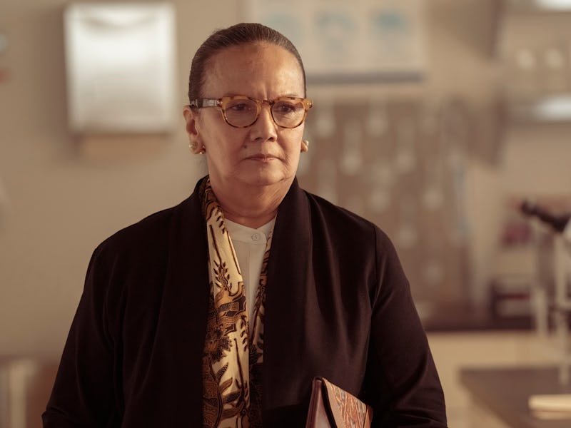 Episode 2 starts with its own big swing, following an Indonesian mycologist asked to inspect the victim of a freak attack at a flour mill. As she realizes the worst-case scenario of the talk show in Episode 1 is coming true, she’s forced to break some terrible news to the authorities — words that hang over the rest of the series.