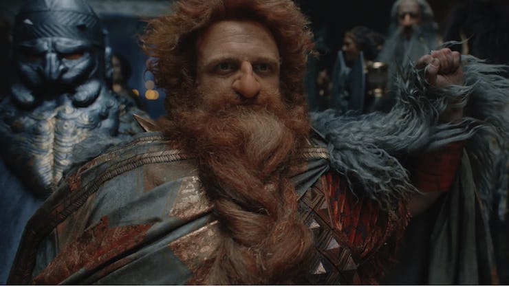 Meanwhile in Eregion, home to the Elven Smiths, Celebrimor (Charles Edwards) tells Elrond (Robert Aramayo) of his desire to build a mighty forge and that they’ll require a massive workforce the Dwarves might provide. So it’s off to the Dwarven mining kingdom of Khazad-dûm where Elrond must convince Prince Durin (Owain Arthur) to aid in their endeavor. This is the storied mountain headquarters viewed in its heyday before it fell into ruin in the Third Age.