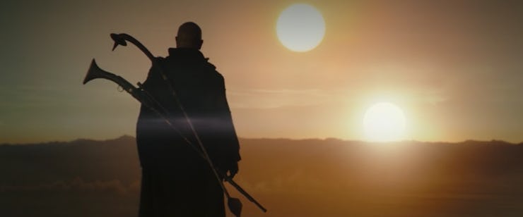 Throughout the events of "The Marshall," this is the assumption you have to go with. Although there had been rumors of Boba Fett returning, Cobb Vanth's reappropriated armor feels like the final word on Fett's fate. That is, up until the very last shot of the episode. As Mando and Baby Yoda ride away into the binary sunset, a robed figure with a few Tusken Raider gaffi sticks on his back turns toward the camera. Yep! That's Temuera Morrison, the actor who played Jango Fett in Attack of the Clones, and later, dubbed the voice of Boba Fett in the 2004 "Special Editions" of the classic Star Wars trilogy. Although we never saw Boba without his helmet in the classic films, he would have to look just like Jango since he was a clone of his father.