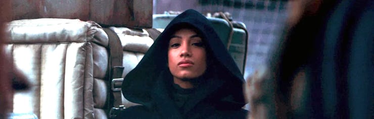 The showrunners of The Mandalorian don't want you to know what's coming. With no episode-specific teasers, our knowledge of what's ahead in Season 2 begins and ends with the pre-season trailer. It includes all sorts of adventures for Mando and Baby Yoda, and also teases a cameo by WWE superstar Sasha Banks, who lurks suspiciously near a dock. When this shot would appear in the show was a mystery, but one screenshot seems to answer that image.
