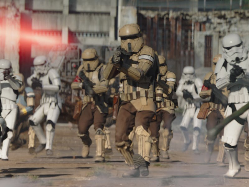 After convincing Mayfeld to venture back into an Empire mining base, Migs lays down a dilemma for Mando. He can't go in alone, but at the same time, he can't exactly take in someone dressed in head-to-toe beskar armor (no one else in the quickly expanding crew qualifies either, for various unimportant reasons). Mando compromises, changing offscreen into an Imperial transport soldier's uniform and keeping the drab green helmet firmly on.