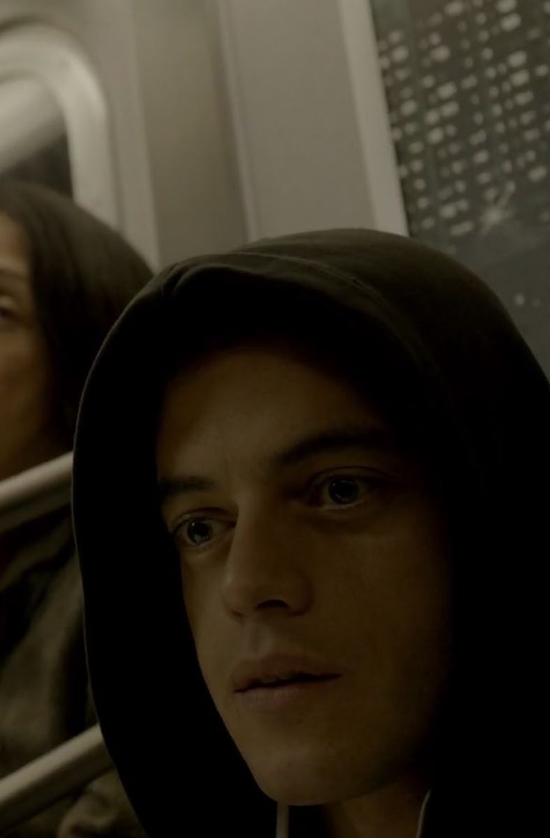 Our lovably misanthropic guide into this new world is Elliot Alderson (the role that thrust Rami Malek’s soul-piercing eyes into the spotlight), a cybersecurity engineer by day and cyber-vigilante by night who receives his golden ticket from the vagrant Willy Wonka he meets on the subway, the titular enigmatic Mister played by Christian Slater, who leads a team of anarchist hackers named fsociety.