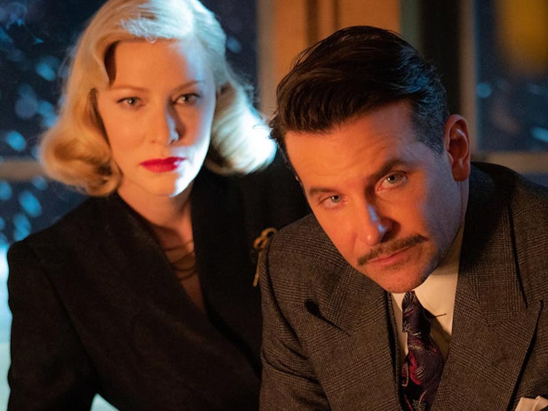 Cate Blanchett as Dr. Lilith Ritter and Bradley Cooper as Stanton Carlisle in Nightmare Alley.