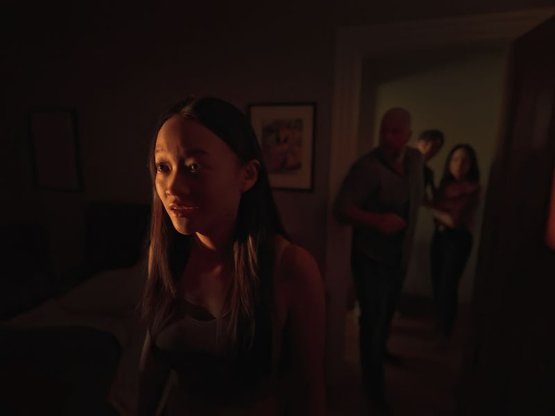 It’s not long before its patience is rewarded: a family enters, led by a realtor showing them the house. The parents (Lucy Liu and Chris Sullivan) and their two teen kids, Chloe (Callina Liang) and Tyler (Eddy Maday), are looking to make a fresh start after Chloe had suffered some unknown trauma. The camera seems to perk up upon seeing the family, taking a particular interest in Chloe, who jerks out of her grief-stricken haze when she senses something hovering over her shoulder.