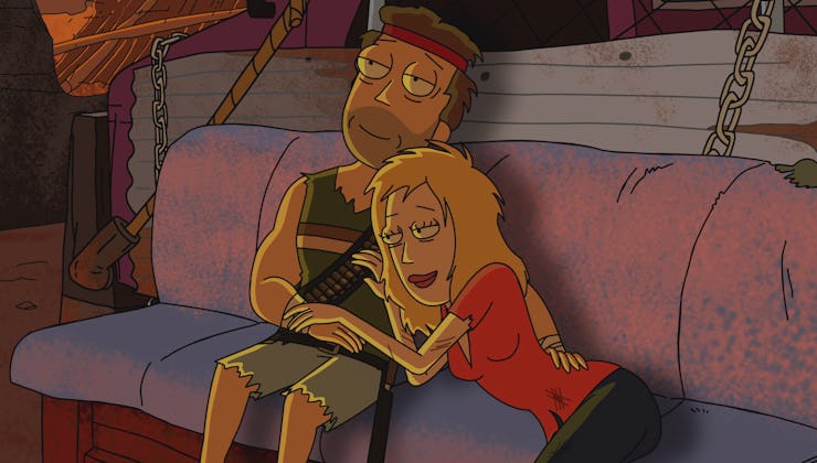 Beth and Jerry rekindle their passion for one another in the post-apocalyptic Dimension C-137.