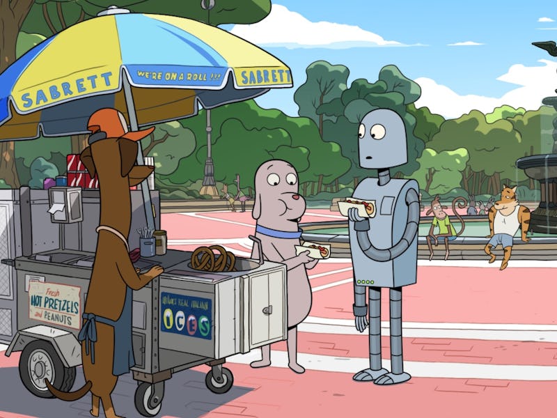Robot Dreams is based on the 2007 graphic novel by Sara Varon, whose surname is shared with the movie’s canine protagonist. Dog Varon lives in a little apartment on East 13th Street, in a metropolis teeming with anthropomorphized fauna of every kind. His is a humdrum life whose days end with microwaved mac-and-cheese meals, and he needs a friend. A TV commercial inspires him to order one: the Amica 2000 robot, some assembly required. There are many like it, but this one is Dog’s, and the two bond immediately. Robot doesn’t know his own strength, which leads to a few awkward moments at first, but Dog is patient as the two enjoy such pastimes as rollerblading in Central Park to Earth, Wind & Fire’s “September,” which becomes the film’s perfectly chosen anthem.
