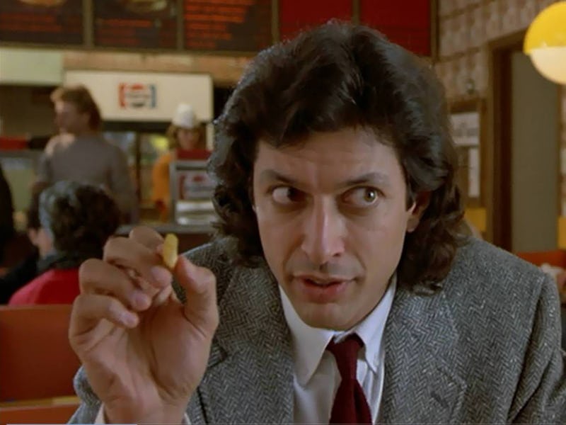 Cronenberg’s first trick in The Fly is to spend the front half of the movie establishing the sexual magnetism of Seth Brundle (Jeff Goldblum). Almost played by John Lithgow, who backed out due to the movie’s inherent grossness, it’s hard to imagine Brundle played by anyone else. Goldblum brings the scientific curiosity he’d become more famous for in blockbusters like Jurassic Park and Independence Day, a perpetually excited nerd with perfect abs.