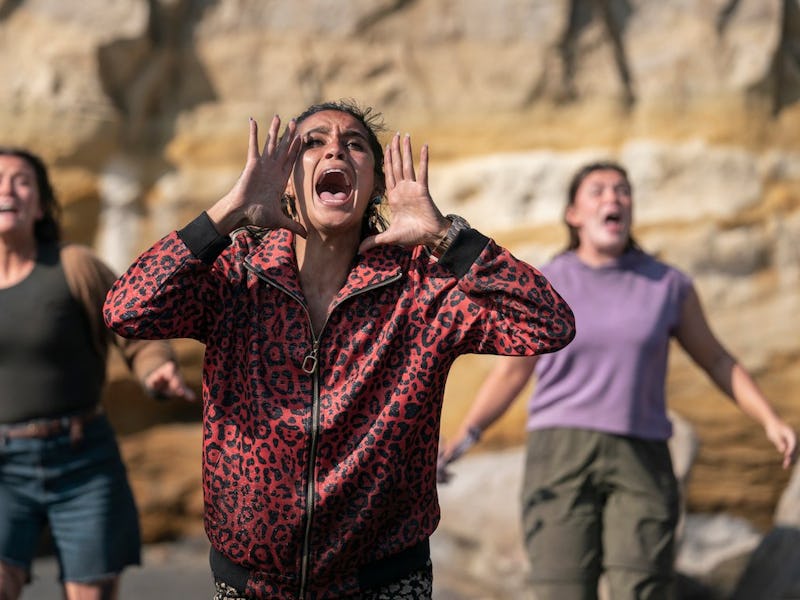 There are two other huge differences between the two shows. While Yellowjackets strands its characters in the woods, The Wilds is set on a desert island. And while the dark undercurrent of Yellowjackets takes an entire season to uncover, The Wilds is never shy about its big twist: that the crash is part of a social experiment examining how young girls can handle crisis situations.