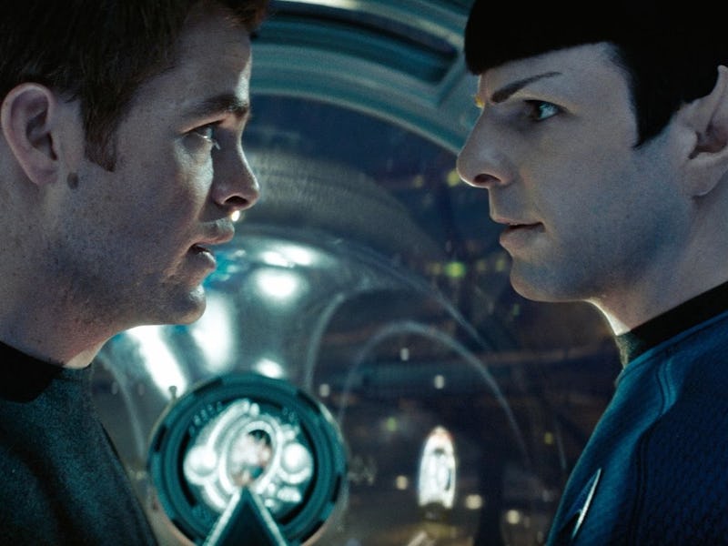 Zachary Quinto as Spock and Chris Pine as Kirk in Star Trek.