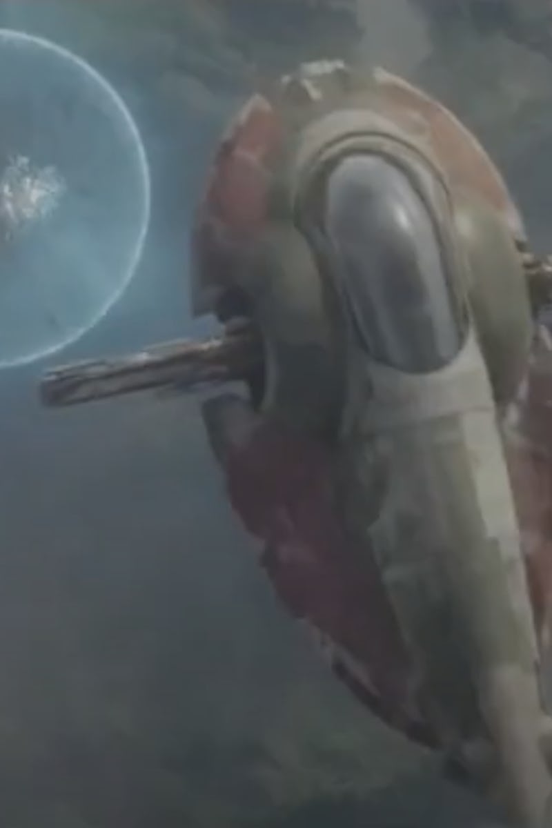 After Djarin and Mayfeld successfully sneak into the base in disguise, they end up stuck in a conversation with an evil Imperial officer. It goes south when Mayfeld brings up Operation: Cinder and our heroes have to shoot their way out. They make it to the roof with some helpful sharpshooting by Fennec Shand and Cara Dune, where Boba Fett picks them up in Slave 1. That's where it gets really good.