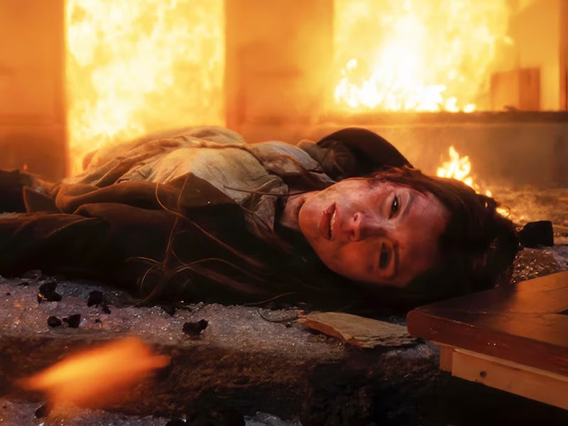 The film isn’t just about a seamstress; Sew Torn is practically sewn together. Barbara almost feels like a B-tier Gotham villain in how she handles situations by leveraging her bobbins of colored threads to use as rigged pulleys. Barbara utilizes her deep professional knowledge of knots, material durability, and Rube Goldberg-esque blueprints to rig these elaborate traps like a game of Mouse Trap because that’s her advantage. She’s no fighting match for underworld types played by Calum Worthy, John Lynch, and Thomas Douglas — but she is one heck of a seamstress. That’s apparent even in set decorations since Barbara’s ceiling is covered in what looks like Cat’s Cradle designs because if Freddy is anything, he’s a thematic completionist who delivers on conceptual immersion and then some.