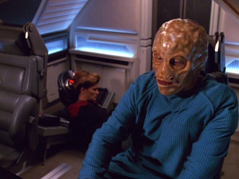 Star Trek didn’t invent the idea of humans having alien babies after undergoing a sudden biological mutation. In fact, the idea of humans raising aliens is probably as old as science fiction itself. Whether we’re talking Alien Nation or Enemy Mine, nurturing and caring for a weird little critter pervades the genre. But in “Threshold,” an infamous 1996 episode of Star Trek: Voyager, we saw unplanned alien babies be straight-up abandoned, even though they were technically the offspring of Captain Janeway and Tom Paris. The absurdity of this episode has been mocked for almost three decades. Now, Star Trek has issued a correction of sorts on its weirdest storyline.