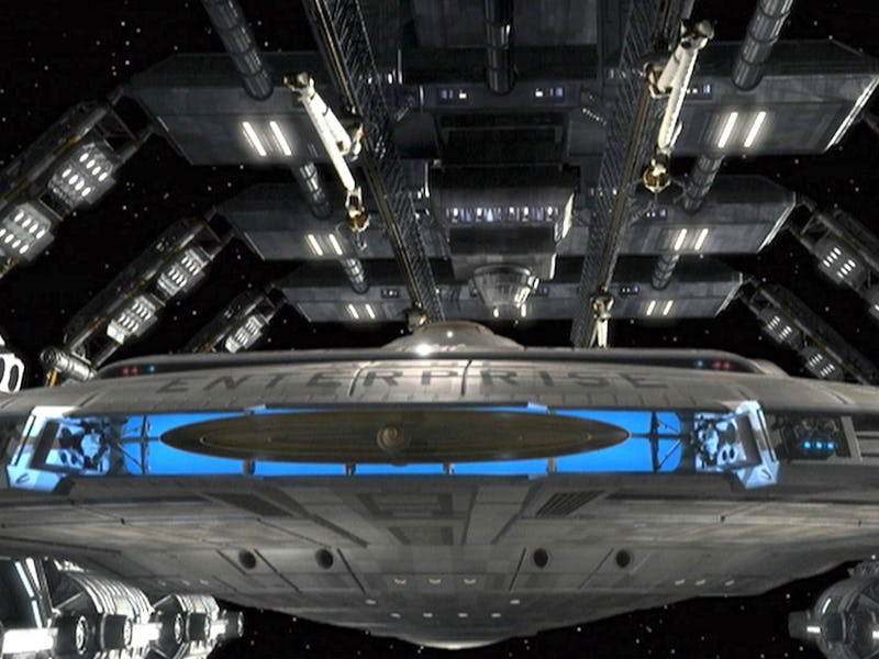 The starship construction tradition introduced in “Those Old Scientists” also suggests this tradition predates the Enterprise, which means there were ships before the Enterprise that were reboots of old 22nd-century ships. We don’t know what those ships were, but we do know that different versions of ships with the same name are all over Trek canon. From more than one Stargazer to various Defiants and the USS Titan-A, we can now imagine all sorts of used parts from old ships being used to make new ships.