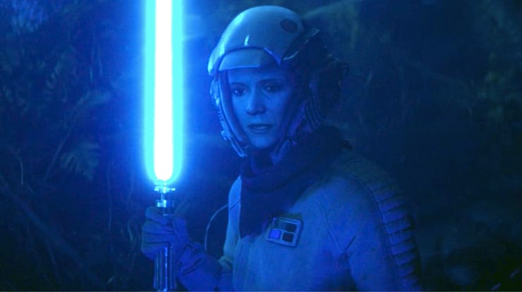 Yet, by The Rise of Skywalker, we're just told that Leia has Jedi Master proficiency with the Force, even though we're never allowed to see it. Some of this isn't anyone's fault. It seems very reasonable to assume that had Carrie Fisher lived, that we might have seen a more active lightsaber-wielding Leia in Episode IX. (Though, that's mostly speculation.) Meaning, any way you lightsaber slice it, Leia's Jedi powers have been relegated to flashbacks, non-canon materials, and a few scenes in the sequels.