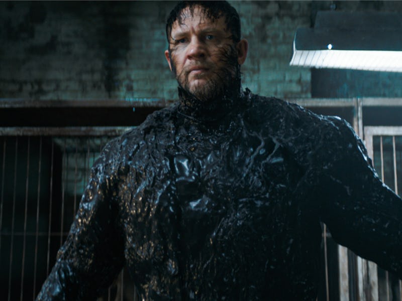 The Venom movies are absurd. An unwitting journalist (Tom Hardy) is possessed by a gooey black symbiote (also Hardy), which causes him to flail about wildly as though maneuvered by a rowdy puppeteer. Since the alien’s constant chattering blares into his mind, but remains largely out of view, his attempts to communicate with it appear to onlookers as the crazed rantings and ravings of a man talking to himself. It’s a bizarre premise, which the actor’s gonzo performance fully exploits for moments of verbal and physical comedy across the three-film franchise. Recall him jumping into a restaurant’s lobster tank for a live midday snack, or delivering phrases like, “...like a turd in the wind,” as Venom describes, with great relish, how he plans to leave one hapless victim.