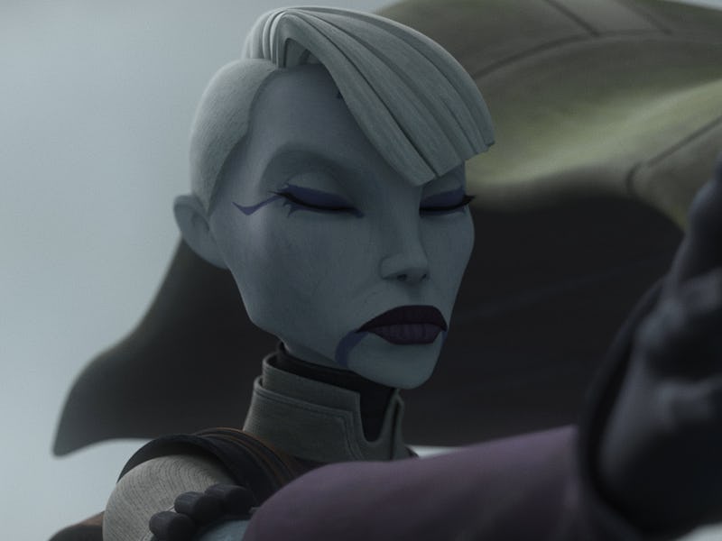 But fans who read Dark Disciple know this cameo isn’t as simple as it looks. Ventress met her demise at the end of the novel after sacrificing herself to save her apprentice-turned-lover Quinlan Vos from Count Dooku. Vos then brought her back to Dathomir to be laid to rest in the Water of Life, a body of water with magical healing properties.