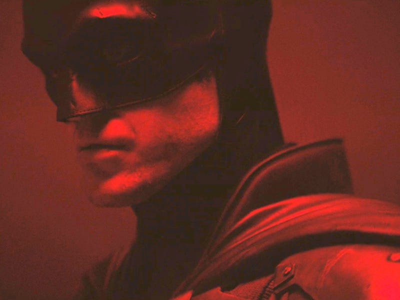 Should you be inclined to "zoom and enhance" on a trailer, as we at Inverse are wont to do, you'll notice a couple more interesting details about the upper sections of the armor. The cowl appears to be constructed from leather, as there's stitching over the cheek and to add contour to where the "eyebrows" would be. (Notice how well they catch the light? That's some good leatherwork right there!) While it's difficult to tell from this footage, it does appear as though Pattinson has something over his eyes, perhaps a filter or something that allows for night vision. We can see what appears to be the whites of the actor's eyes once we brighten the image, though it does seem there is some inset, translucent material that partially covers the eye area.