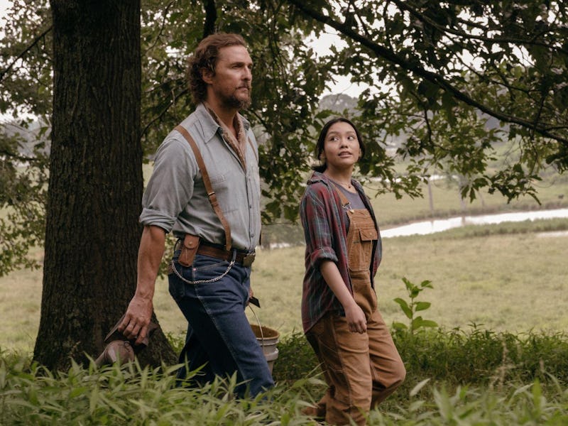 Patterson and cinematographer M.I. Littin-Menz bathe the film in a warm, nostalgic glow, with every shot feeling permanently sun-dappled — and Amziah King is that sun. The affection, bordering on awe, that Kateri has for Amziah King seeps through every frame, and it’s doubled by Patterson’s clear reverence for McConaughey as a star. And McConaughey plays the part, all toothy grins and witty remarks while he welcomes Kateri into the fold. The film’s collection of colorful characters, including Rob Morgan’s level-headed lawyer, Scott Shepherd’s incomprehensible handyman, Owen Teague’s ex-con, and Cole Sprouse’s amateur sleuth (all of whom are part of Amziah’s bluegrass band in some way), also lend to the film’s misfit charm. But once the film pulls its second-act twist, it becomes clear that the film really belongs to Angelina LookingGlass.