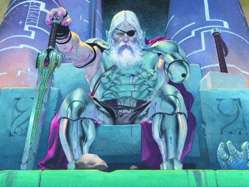 Meet King Thor — King Thor is one of several Thor variants to pop up in the comics over the years. Hailing from the Earth-14412 universe, King Thor (a.k.a. All-Father Thor) has origins that generally resemble those of the prime-reality Thor. However, the two characters’ paths begin to diverge when King Thor sacrifices his eye in a battle and becomes the All-Father of Asgard — taking his father’s place.