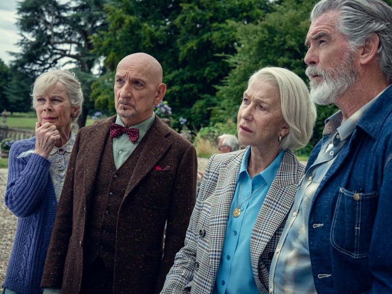 The movie follows four residents at Coopers Chase, a retirement community in a grand estate that used to be a convent. The club consists of Elizabeth (Helen Mirren), the whip-smart leader who used to work a vague job in the diplomacy that required “a wide portfolio of skills,” Ibrahim (Ben Kingsley), the buttoned-up “confirmed bachelor” who is the closest thing to a tech whiz the group has, and Ron (Pierce Brosnan), a renowned union leader who’s often visited by his celebrity fighter son (Tom Ellis.) When a cold case they’re reviewing requires medical knowledge, they reach out to new resident Joyce (Celia Imrie), a retired trauma nurse who always comes with pie.